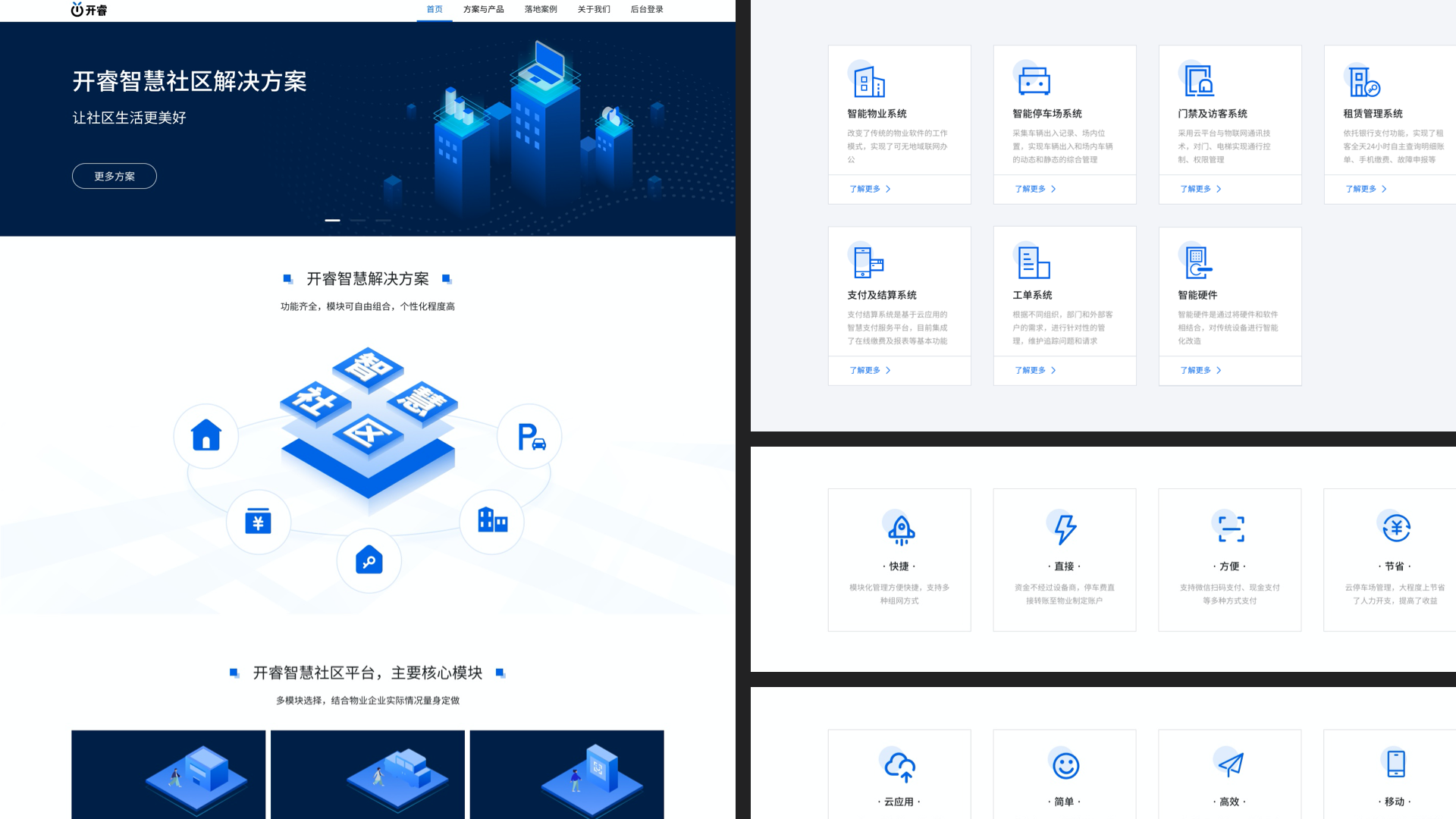 2、设计作品涵盖多品类,如智慧社区、教育系统、政务系统、新能源充电桩、电商系统、家政、家居等UI设计。