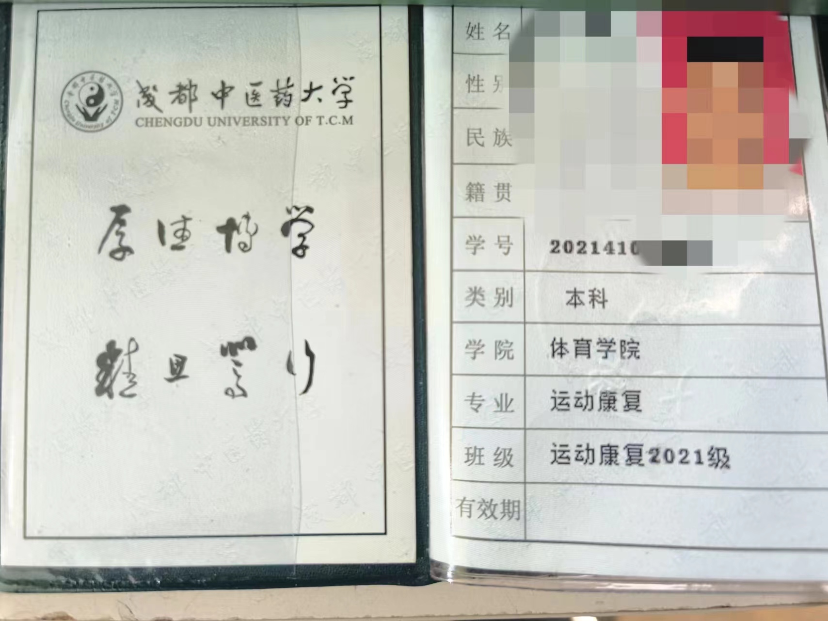 1、在成都中医药大学就读运动康复专业