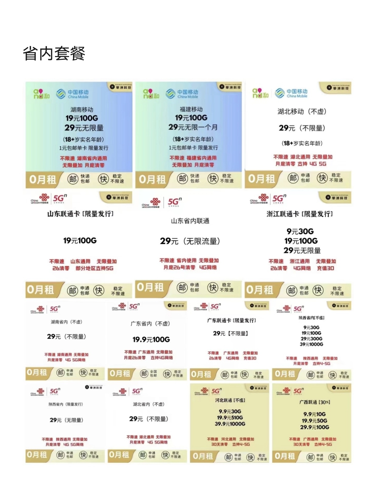 1、流量卡套餐,19.9 100G 29.9无限量