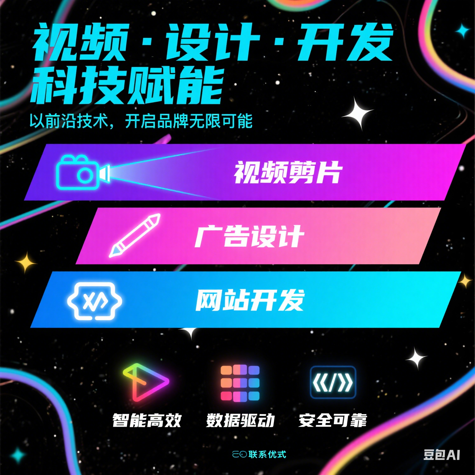 我可以视频剪辑,广告设计,网站制作,小程序开发,网站转小程序,app等。1张海报
