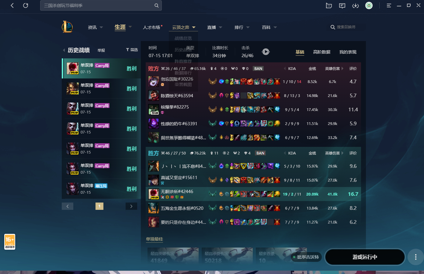 我可以英雄联盟游戏代练、陪玩,保障安全效率,任何段位任何大区都可以打,一天最快可4个段