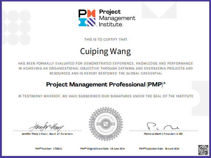 2. 精通大型疑难合同项目,定制化开发项目,内部产品研发项目,敏捷开发项目管理,敏捷转型,流程变革,项目管理体系建设,ISO27001、ISO20000审核员。